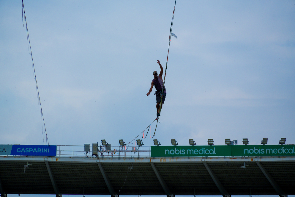 La modalidad Speedline Highline consiste en recorrer 100 metros sobre una cinta de apenas una pulgada de ancho, suspendida a más de 20 metros de altura. Los competidores, equipados con arneses de seguridad, deben desplazarse en el menor tiempo posible, desafiando sus propios límites en cada intento.